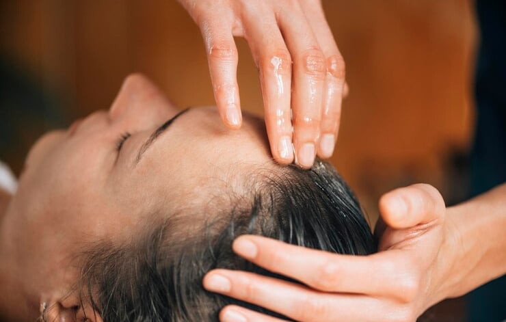 Relaxing hair spa deeply conditions, improves scalp health, and rejuvenates dull strands for renewed shine.